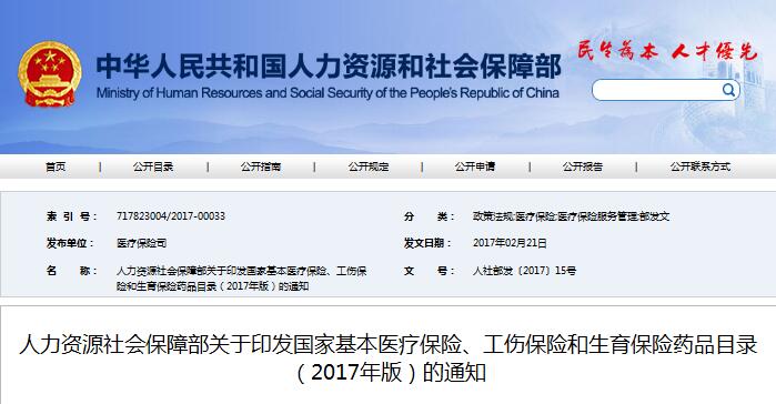 今日,人社部網站正式發布了2017年版國家基本醫療保險、工傷保險和生育保險藥品目錄。(《關于印發〈國家基本醫療保險、工傷保險和生育保險藥品目錄(2017年版)〉的通知》(人社部發〔2017〕15號)),此次藥品目錄由來自全國各省(區、市)的近4千名臨床醫生、藥師以及醫保管理專家通過多輪評審產生。