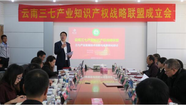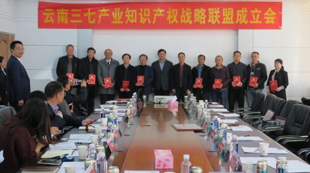 2018年12月21日上午,由文山三七產(chǎn)業(yè)協(xié)會(huì)和云南三七科技有限公司組織召開(kāi)的云南三七產(chǎn)業(yè)戰(zhàn)略聯(lián)盟成立大會(huì)在昆明高新區(qū)創(chuàng)立大廈1樓會(huì)議室舉行。出席會(huì)議的領(lǐng)導(dǎo)、嘉賓有云南省知識(shí)產(chǎn)權(quán)局規(guī)劃處處長(zhǎng)楊杰、云南省醫(yī)藥行業(yè)協(xié)會(huì)會(huì)長(zhǎng)王維生、文山三七產(chǎn)業(yè)協(xié)會(huì)會(huì)長(zhǎng)曾立品、云南省委黨校郭旭初教授、云南中醫(yī)藥大學(xué)錢子剛教授、云南省食品藥品監(jiān)督檢驗(yàn)研究院明全忠主任、云南白藥集團(tuán)中藥資源有限公司總經(jīng)理蘇豹、昆藥集團(tuán)股份有限公司副總裁血塞通藥物研究院院長(zhǎng)楊兆祥、云南三七科技有限公司總經(jīng)理余斌等,云南白藥、昆藥集團(tuán)、三七科技、特安吶、北京精金石知識(shí)產(chǎn)權(quán)代理有限公司、天江一方、七麟三七、七丹藥業(yè)、文山白云山和黃三七等23家聯(lián)盟首批成員單位代表出席大會(huì)。